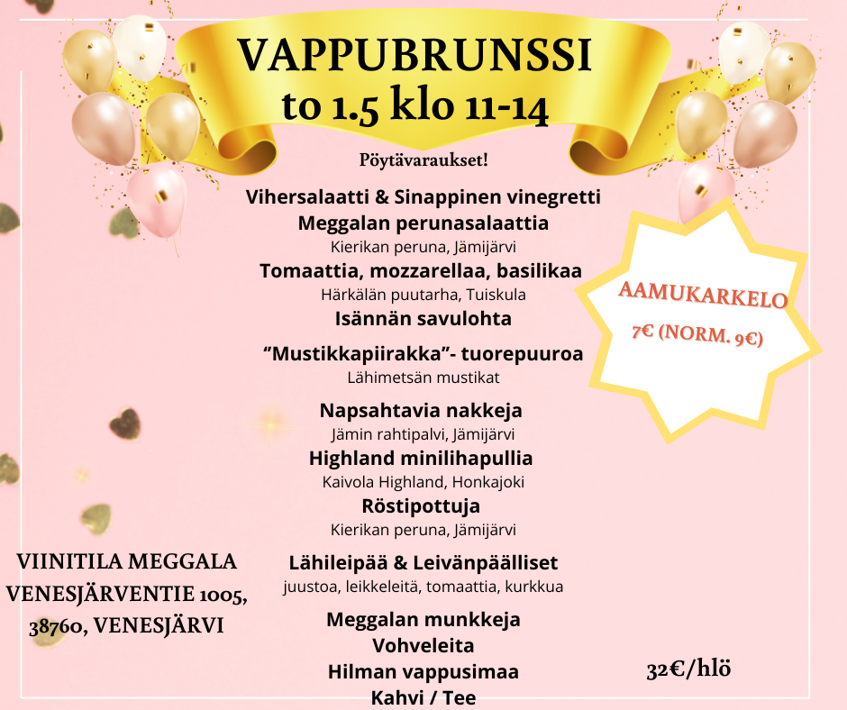 Sunnuntain buffetlounas Meggalassa 22.3. klo 11.30-13.30. Pöytävaraukset ennakkoon viimeistään to 19.3. mennessä 050 355 3878. Lämpimästi tervetuloa herkuttelemaan.